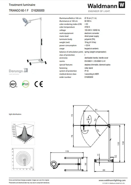 $824.96Unit price /UnavailableWaldmann Triango LED 603F Minor Procedure Light with Roller Stand Dimmable